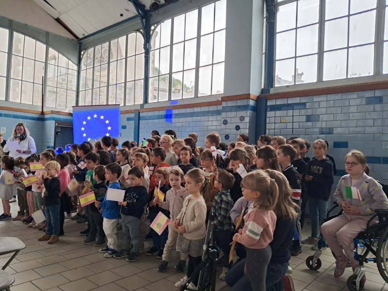 Les maternelles ont fait chanter la salle avec une chanson espagnole, tandis que les grandes sections et CP ont emmené le public en Angleterre et en Russie avec un joli chant intitulé “La Babayaga”. Les CE1 et CE2 ont voyagé jusqu’en Italie et en Roumanie,  les CM1-CM2 ont interprété les hymnes écossais et irlandais avec beaucoup de cœur. Enfin, toute l’école réunie a représenté la France avec une chanson entraînante qui a fait danser le public !